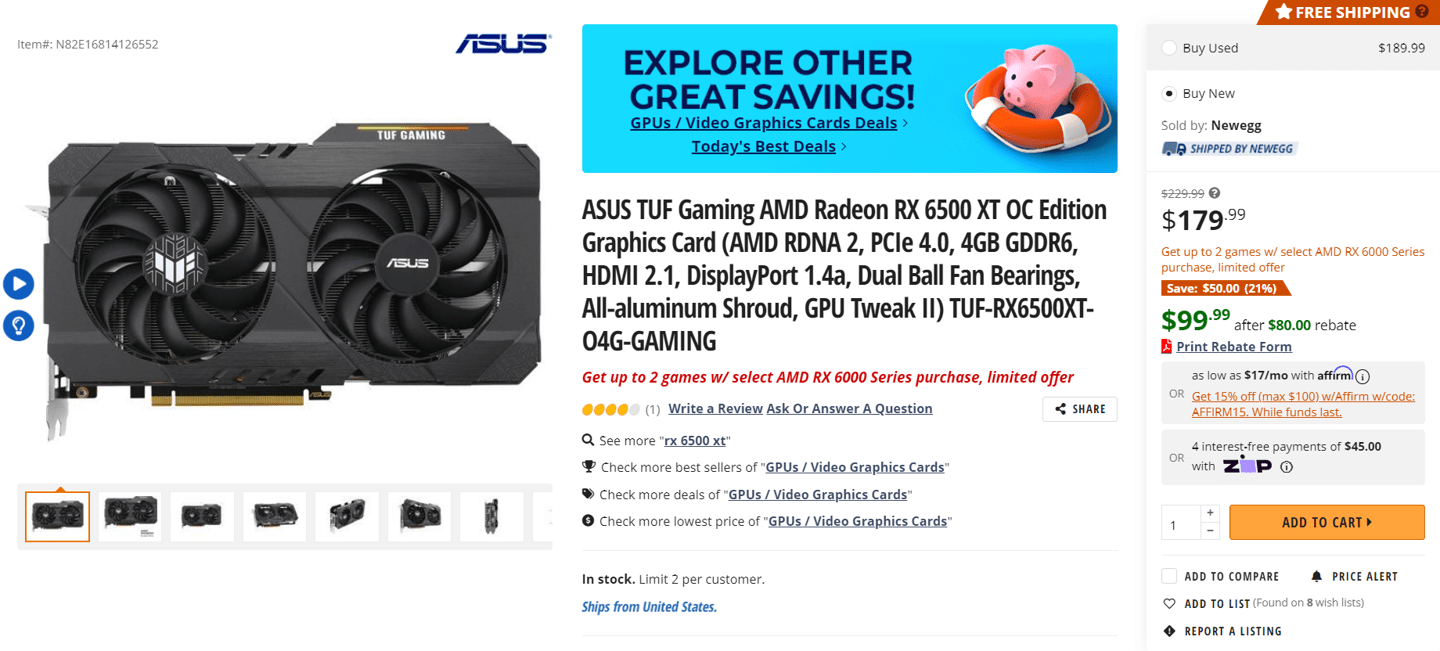 AMD入门级显卡RX 6500 XT海外降到100美元,送60美元游戏